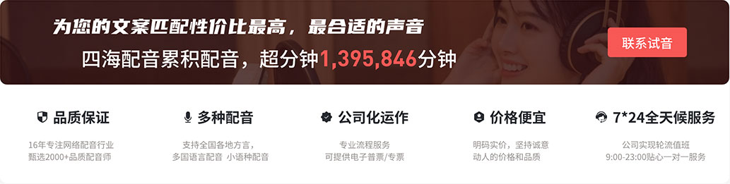 注:價(jià)格不含稅,咨詢客服本站標(biāo)注配音價(jià)格供參考,客服有權(quán)根據(jù)實(shí)際稿子難度計(jì)價(jià),每位老師均有起錄價(jià)。