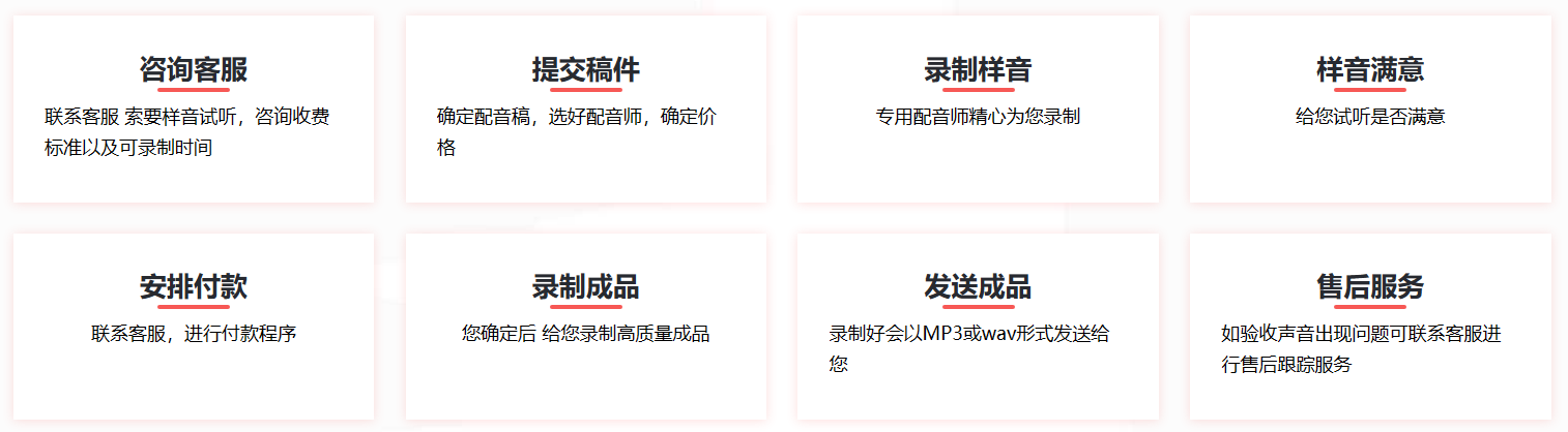 相對(duì)于同行,因?yàn)榻灰琢看?、合作順暢、英語(yǔ)、俄語(yǔ)可試音、價(jià)格合理等因素,四海配音可以做到6-24或36小時(shí)交付,大大的提升了客戶滿意度。